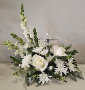 White Snapdragons, Pink Carnations, White Roses, White Cushion Mums, Crystal, Approx X.